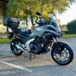 HONDA NC750X DCT ABS, 30939 kms, couleur gris, entretien à jour, carnet et manuel du conducteur, double de clé, garantie et assistance constructeur jusqu’au 27/02/2028, avec, top case deux casques Givi, supports de valises latérales Givi, pare mains, béquille centrale, poignées chauffantes, chez Doumenq motos.