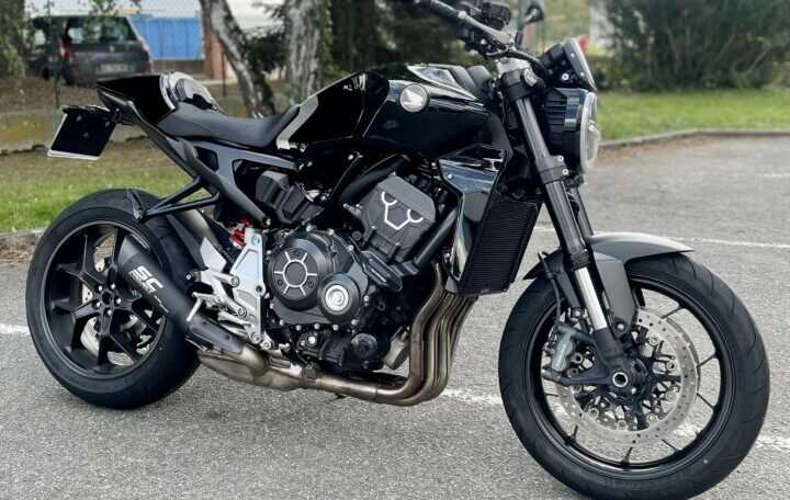 HONDA CB1000R, 21544 kms, couleur noire, entretien à jour, carnet et manuel du conducteur, double de clé, garantie 1 an en France Métropolitaine, avec saute vent origine Honda, patins de protections SW-Motech, capot de selle Honda, support de plaque court, silencieux black édition SC Project ( silencieux d’origine livrée à la vente), chez Doumenq motos.