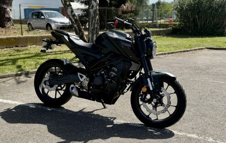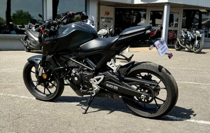 HONDA CB125R ABS, 3762 kms, couleur noir, première main, entretien à jour, carnet et manuel du conducteur, double de clé, garantie et assistance constructeur jusqu’au 12/07/2028, pare carters SW-Motech, support de plaque court R&G, chez Doumenq motos.