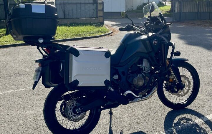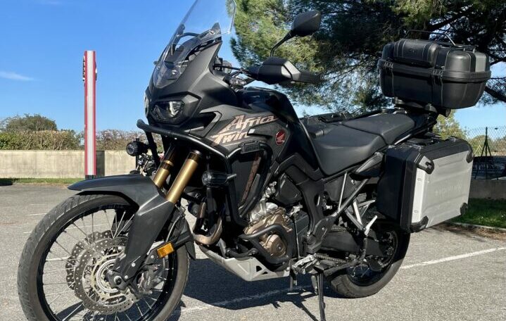 HONDA CRF1000 AFRICA-TWIN ABS, 2424 kms, couleur noir, entretien à jour, carnet et manuel du conducteur, double de clé, garantie 1an en France métropolitaine, Accessoires origine Honda : valises latérales, béquille centrale, protège mains; top case deux casques Givi, pare carters Givi, feux additionnels Givi, chez Doumenq motos
