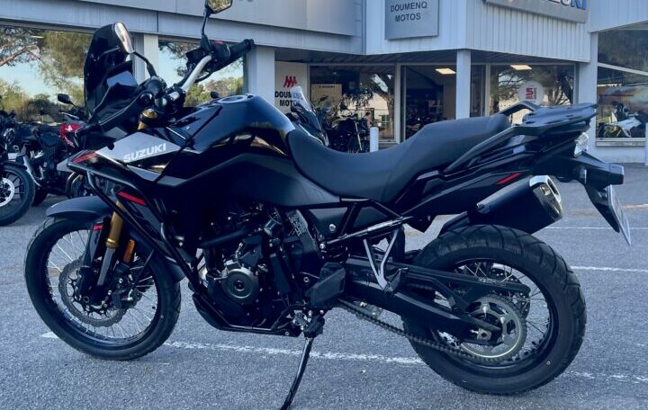 SUZUKI DL800DE ABS, 500 kms, couleur noir, entretien à jour, carnet et manuel du conducteur, double de clé, garantie et assistance constructeur jusqu’au 16/04/2030 avec pare carters origine Suzuki et bulle sport fumée Puig, chez Doumenq motos.