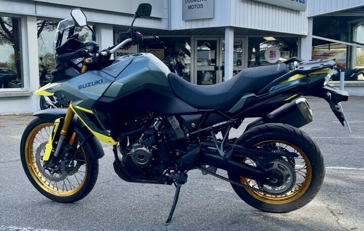 SUZUKI V-STROM DL800DE ABS, 9520 kms, couleur vert, première main, entretien à jour, carnet et manuel du conducteur, double de clé, garantie et assistance constructeur jusqu’au 25/04/2029, chez Doumenq motos.