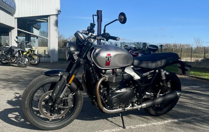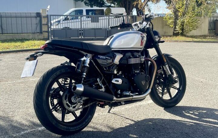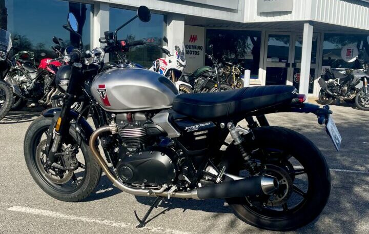TRIUMPH SPEED TWIN 900 A2 ABS, 4103 kms, couleur gris, entretien à jour, carnet et manuel du conducteur, double de clé, garantie et assistance constructeur jusqu’au 21/01/2027, chez Doumenq motos.